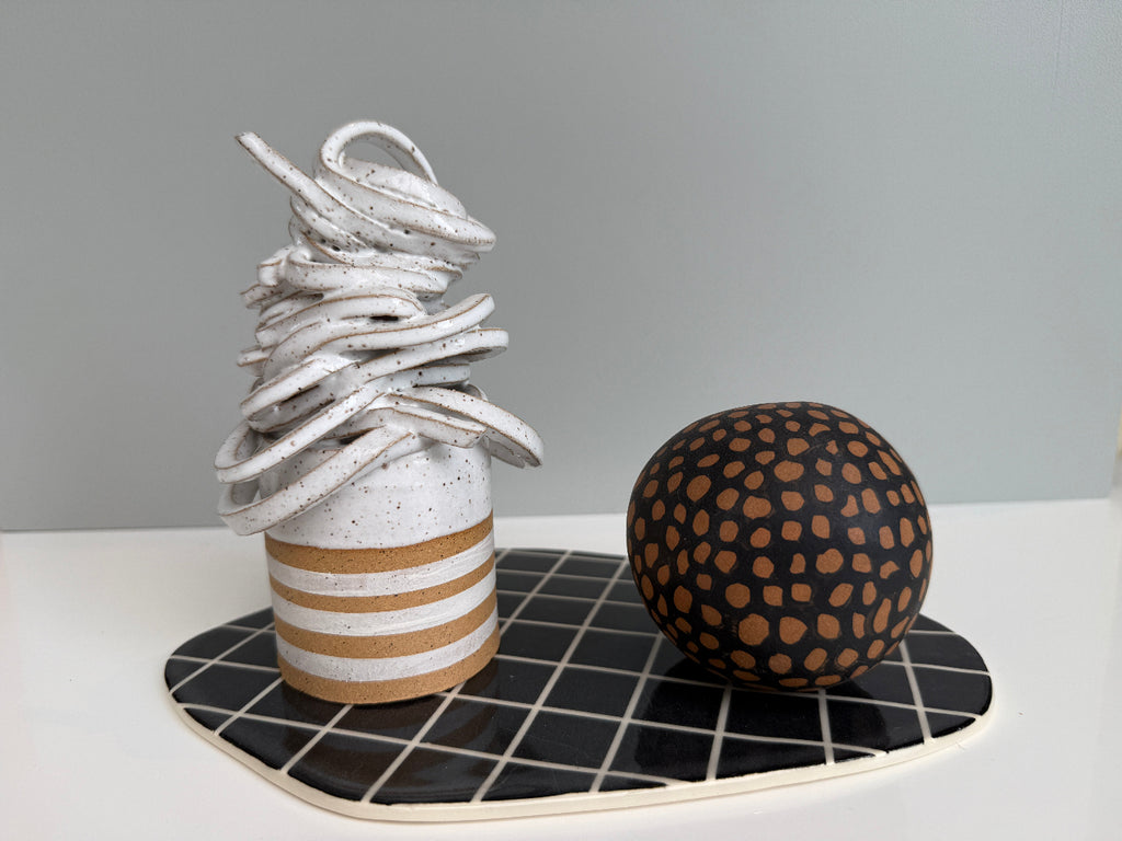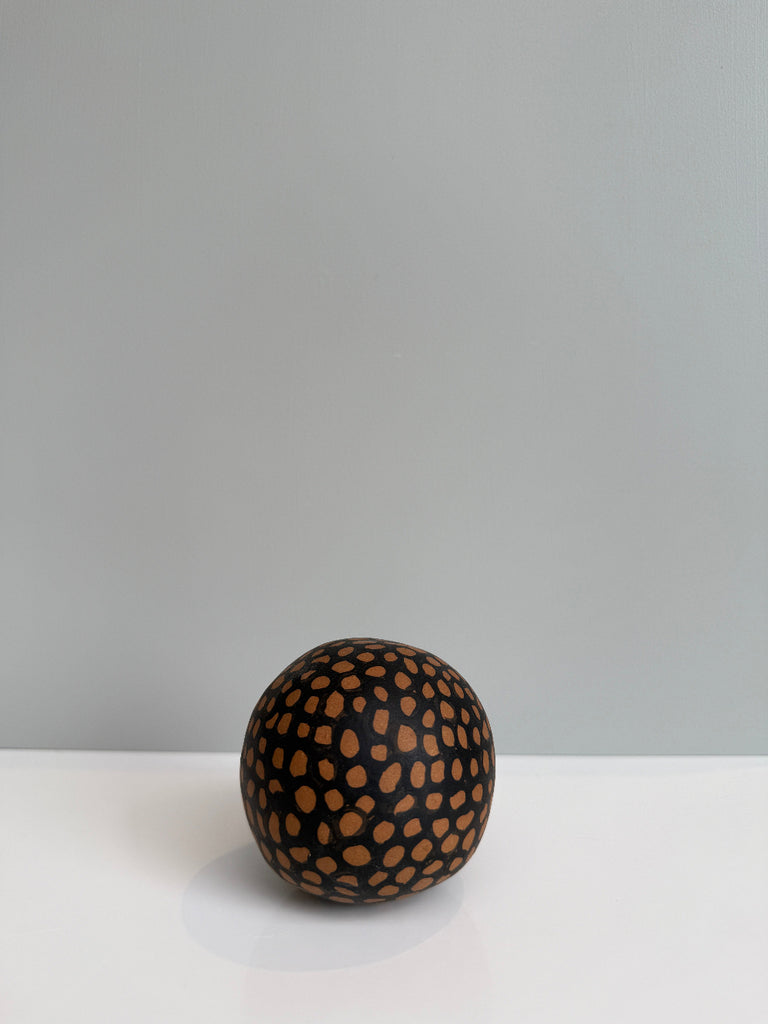 Add a point of difference to your curation of objects with this hand painted terracotta and black decorative ball.